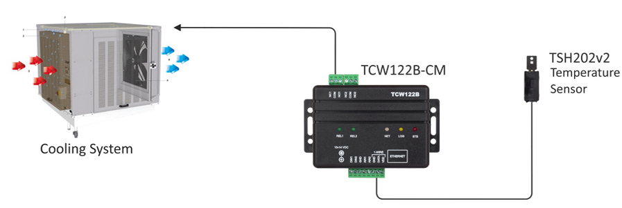 TCW122B-CM støtter 1-tråds grensesnitt. Opptil to temperatur- eller fuktighetssensorer kan kobles til. I tillegg til omgivelsesparametere kan to analoge spenninger og statusen til to digitale innganger overvåkes. For hver parameter kan e-post og/eller SNMP-felle sendes for enhver alarmtilstand.