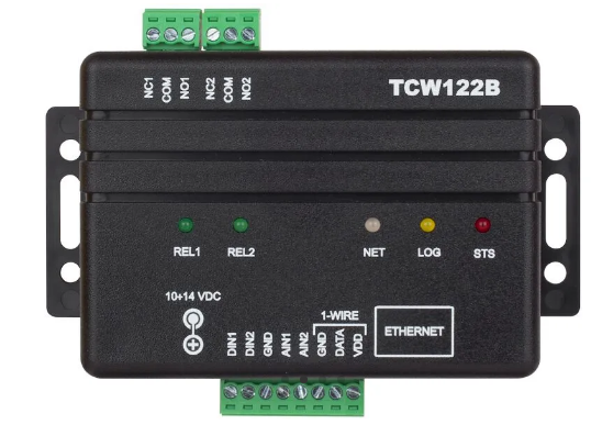 TCW122B-RR er et fjernbetjeningsmodul med to digitale indgange og to relæudgange med normalt åbne og normalt lukkede kontakter.