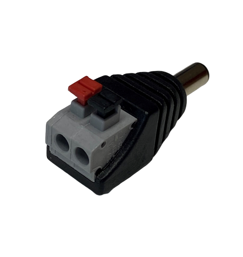 DC plugg han 5,5/2,1 mm terminalblokk med push-down klemme