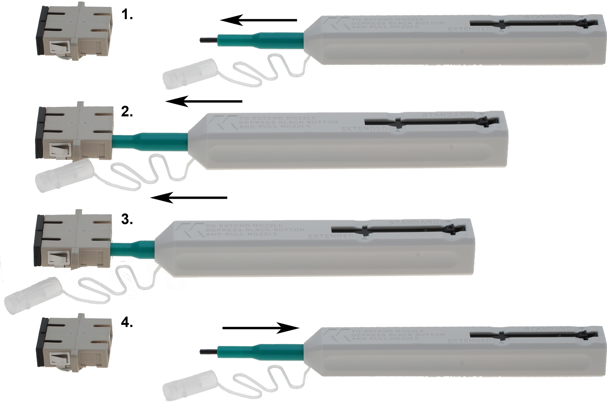 Rengjør SC-adapteren og fiberpluggen for støv og smuss før bruk, ved å trykke et stykke rensende støvtråd på fiberføreren.