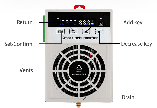 RACK Avfukter, 60Watt. For maks 1,5m3, 230VAC, Vifte og Peltier. DIN forsamling