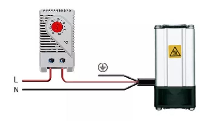 200 Watt PTC varmeelement med vifte. DIN-brakett. 24 Vdc. Temperaturbegrenser. Koble til termostatkontroll