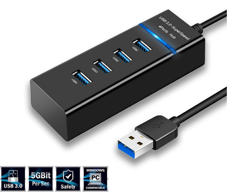 En liten kompakt boks med 4 stk. 3.0 Hub