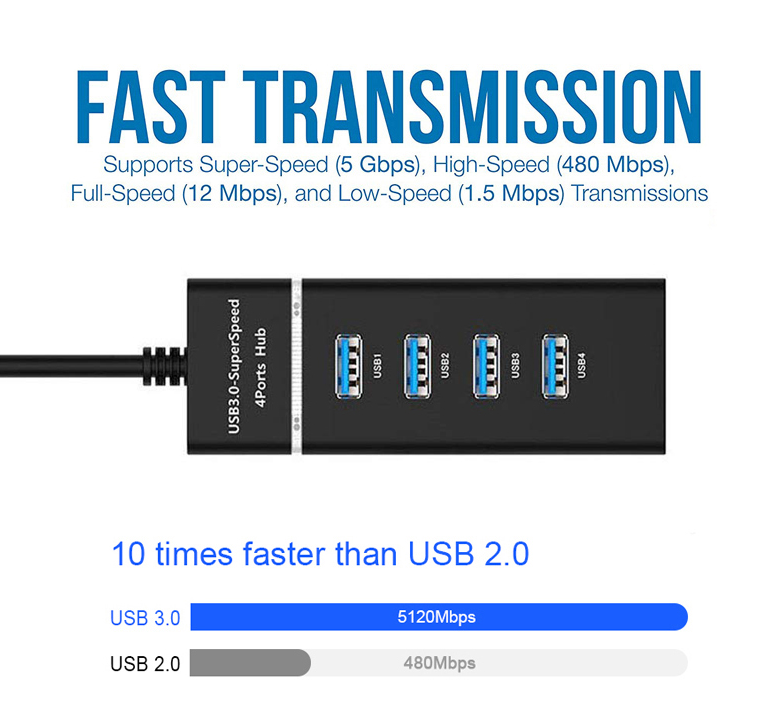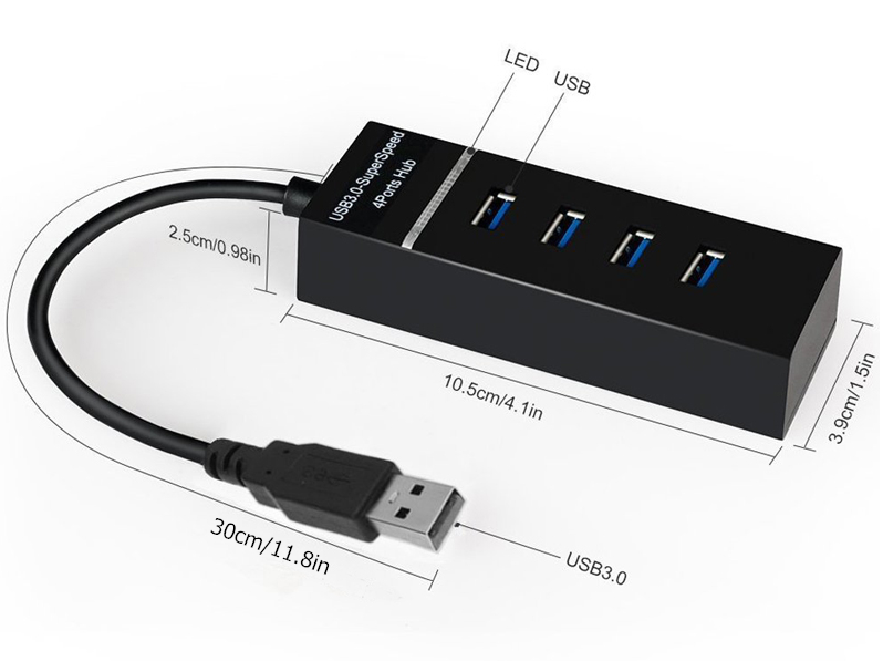 4-ports USB 3.0 Super Speed HUB med 39 cm USB 3.0-kabel