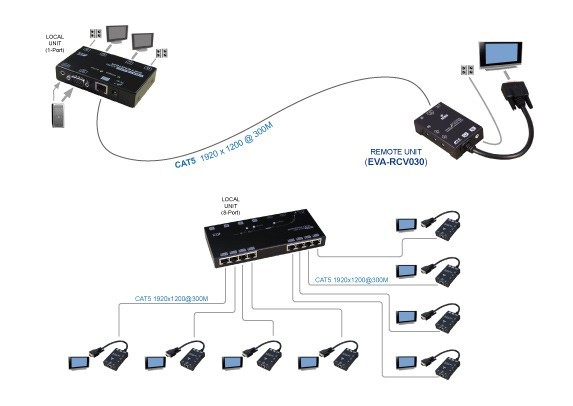 EVA-RCV030, Full HD 1080p CAT5 VGA+Audio Extender Receiver (300M)