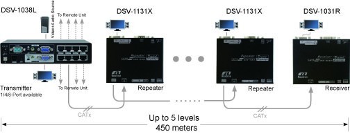 DSV Series, 450-Meter Video + Audio + Serial Extender med RS232