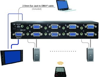 VSVA-ED401, 4-Port VGA + Audio Switch med RS232 & Auto-sensing funktion