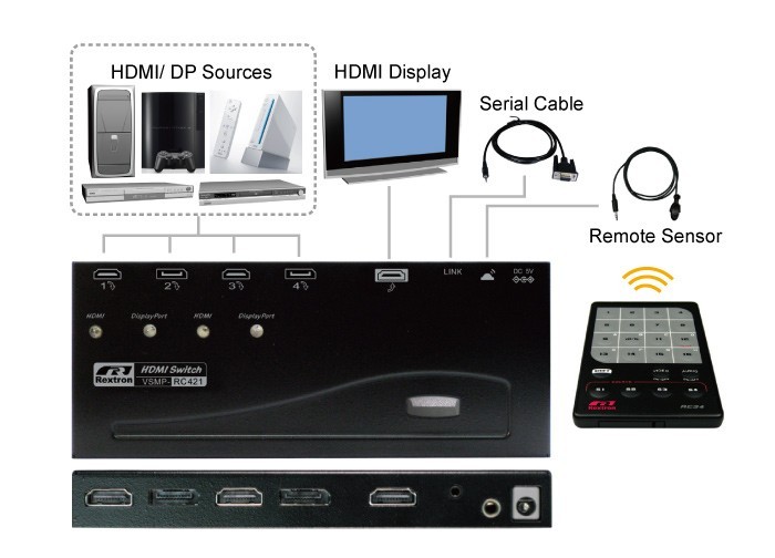 VSMP-421, 4-Ports HDMI & DisplayPort Switch